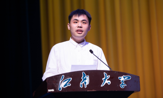 其后,刘渊院长宣读“智能之星”表彰决定并为“智能之星”颁发荣誉证书。吕天旭作为“智能之星”代表、在校生代表发言,他结合自己在江大的求学经历,分享了自身学习心得,并希望同学们能够在今后的学习生活中能够笑对改变、勇于尝试、勤于思考、进取奉献。