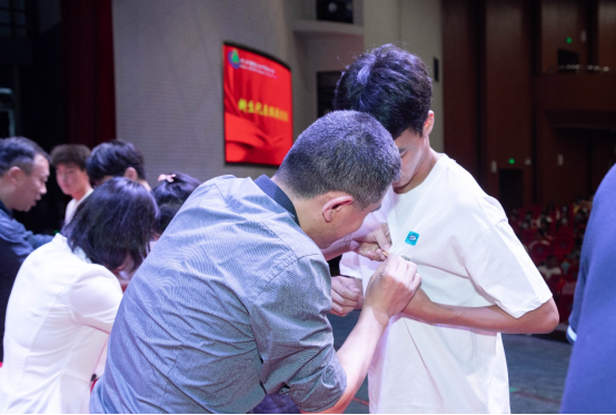 院领导为新生代表佩戴校徽