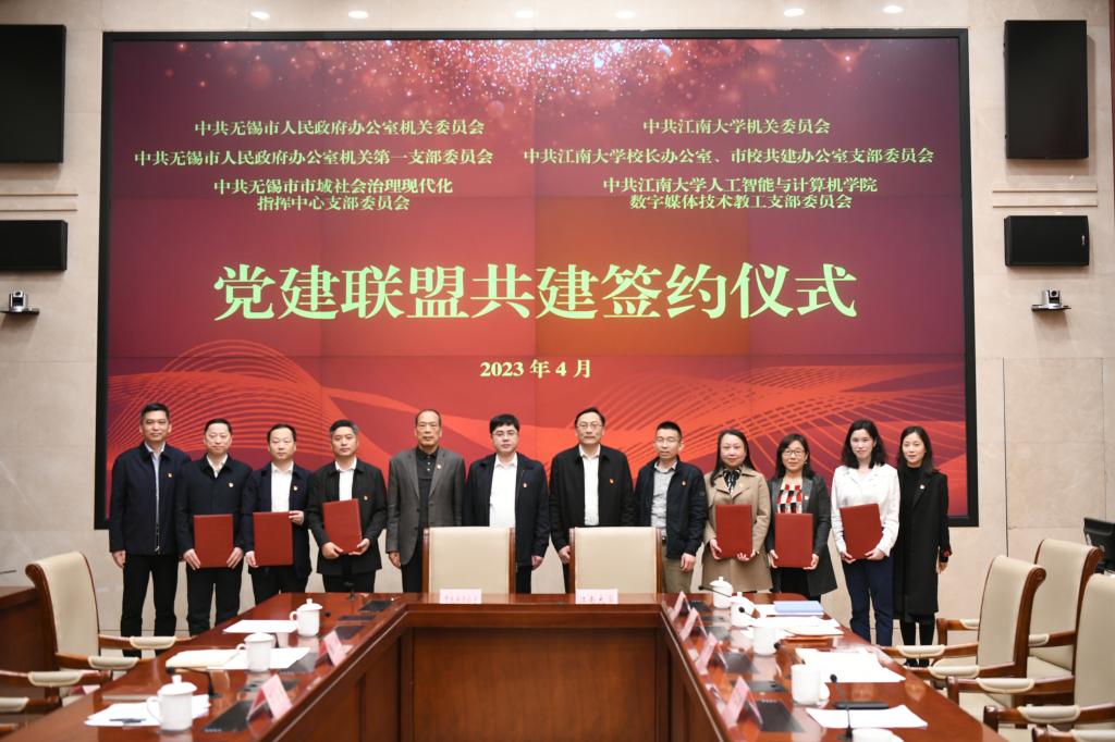 数字媒体技术教工党支部三方举行党建联盟共建签约仪式。无锡市政府办公室、无锡市城市运行管理中心、久久小说