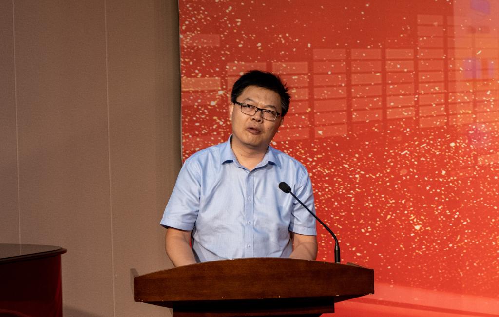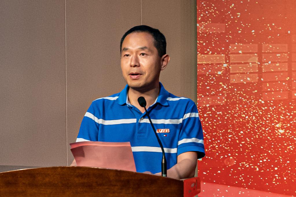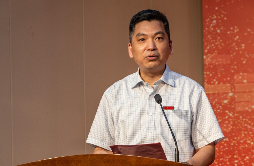 学院副院长钱鹏江宣读校友联络员名单并赠送毕业小礼物,他希望校友联络员能够认真履行职责,凝聚校友、服务母校。