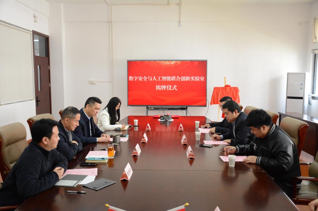 戴宪宇、王莉莉代表双方签署“数字安全与人工智能联合创新实验室”共建协议,戴宪宇、方伟共同为联合创新实验室揭牌。