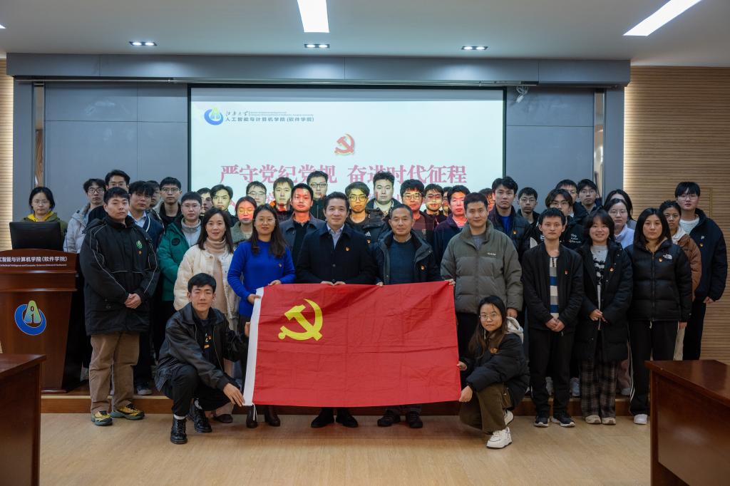 马鑫对本次活动的精心组织表示充分肯定,认为此次支部活动把党纪学习教育成果与支部日常工作深度结合,形成党建赋能、党纪正风、科创引领的强大合力。他指出,学校以习近平新时代中国特色社会主义思想为指导,深入学习贯彻全国教育大会精神,把握强国建设的新任务、新要求,以饱满的热情、昂扬的斗志、务实的作风迎接学校第五届党代会的胜利召开;希望支部党员在追求学术创新的同时,发挥主人翁意识,积极参与学校建设和研究生教育管理。他强调,学生党员要牢树理想信念,深入学习习近平总书记关于科技创新重要论述的核心要义,勇于创新、敢于实践,做到红专并进;要强化自身本领,抢抓人工智能相关专业发展机遇,守正创新,促进学科交叉融合;要勇于担当,积极投身高水平科技自立自强新征程,以智能之“智”,赋时代之“能”,答好“教育强国,江南何为;奋进江南,青年何为”的时代问卷。