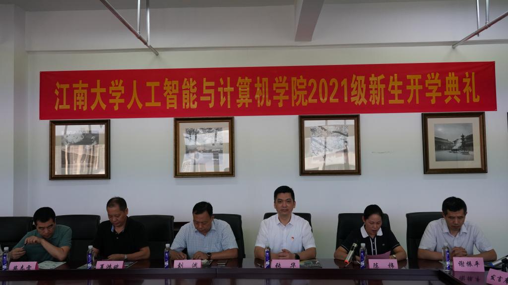 于智能楼610会议室举办2021级新生开学典礼。鉴于目前的疫情防控形势,本次开学典礼采用线上线下相结合的方式进行,新生通过网络直播同步观看典礼现场。院党委书记张华、院长刘渊、院党委副书记兼副院长陈祎、副院长谢振平、副院长夏鸿斌、副院长柴志雷以及2021级新生辅导员和班主任老师出席本次开学典礼,典礼由院党委副书记陈祎主持。