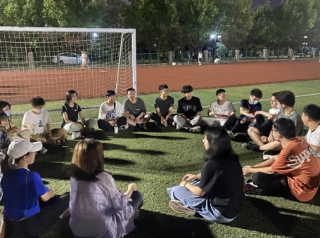 南北区,迎着蠡湖微风拂面,熟悉校园,结交伙伴,共度幸福快乐的国庆节。人工智能2204班开展了团建活动,从击鼓传花、数字报团,到狼人杀、名字接龙,再到自我才艺展示,一个个精彩的活动拉近了班级同学的距离。数字媒体技术2201班组织同学相聚在西北操场,通过击鼓传花、抱团等团建游戏,真心话大冒险、表演才艺等方式,让班级同学互相熟悉。计算机科学与技术2203班的团建活动在“击鼓传花”的热身游戏中开始,失败者将进行自我介绍和才艺表演,同学们围坐在草坪上在游戏中既感受到了快乐,又加深了彼此间了解,收获成长的喜悦。