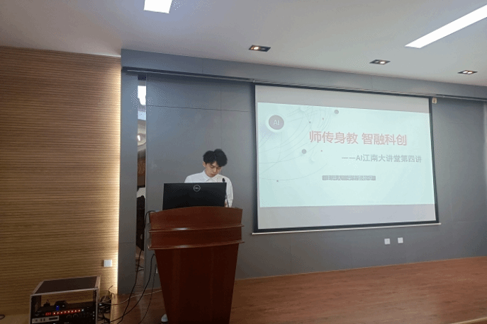 主办的“师传身教 智融科创”AI江南大讲堂第四讲在信息楼310报告厅顺利举行。