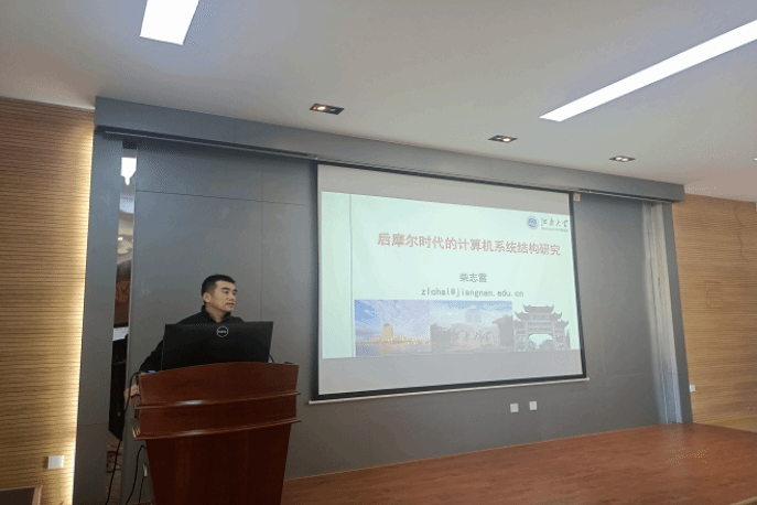 副院长、教授柴志雷作为主讲导师。柴志雷教授以《后摩尔时代的计算机系统结构研究》为题,分享了计算机系统结构的新发展趋势,探讨不同的计算范式,以计算机系统结构组成结构为出发点,对软件和硬件/固件的交互做了详细的阐述。报告从计算机系统结构的研究范畴、计算机系统结构研究的新挑战、计算范式的迁移、实验室的相关研究四个方面分别进行讲解。讲座上,柴志雷教授罗列了站在系统思维的角度可以有效的解决若干具体的应用问题。最后,柴志雷教授对团队实验室的相关研究做了简要介绍:领域专用的处理器,用来进行工业级别的喷墨印刷,该印刷技术具有高速打印功能且适用场景非常广泛,如陶瓷地砖打印、木板纹路打印、墙纸打印或是金属打标等,研究前景非常可观。