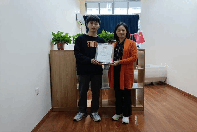 陈祎为李高湘同学颁发感谢信