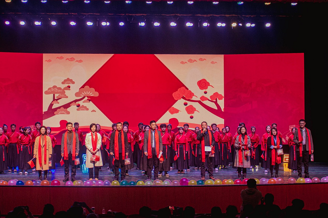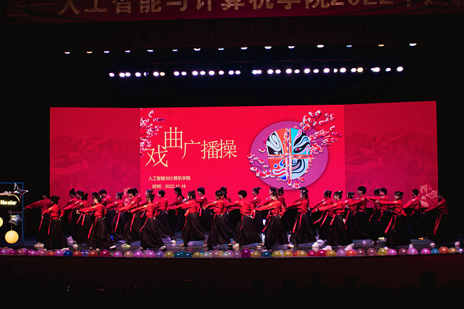 晚会在“嬉皮纵火案”乐队的歌声中拉开帷幕,动感的旋律瞬间点燃全场师生的热情。首先,刘渊院长致辞,他回顾我院2022年在全院师生共同努力下取得的突出成绩,并寄语2022级智能学子要坚定理想信念、心系伟大祖国、勇于砥砺奋斗,求真学问、练真本领,以饱满的精神状态迎接大学生活。接下来,获得2022年度“戏曲广播操”大赛二等奖的我院学生团队向观众呈现了一场编排出色、整齐划一的精彩表演,随后,院领导、老师通过一段深情而有力的朗诵寄语智能学子并向台下师生分发新年糖果,将晚会推向高潮。