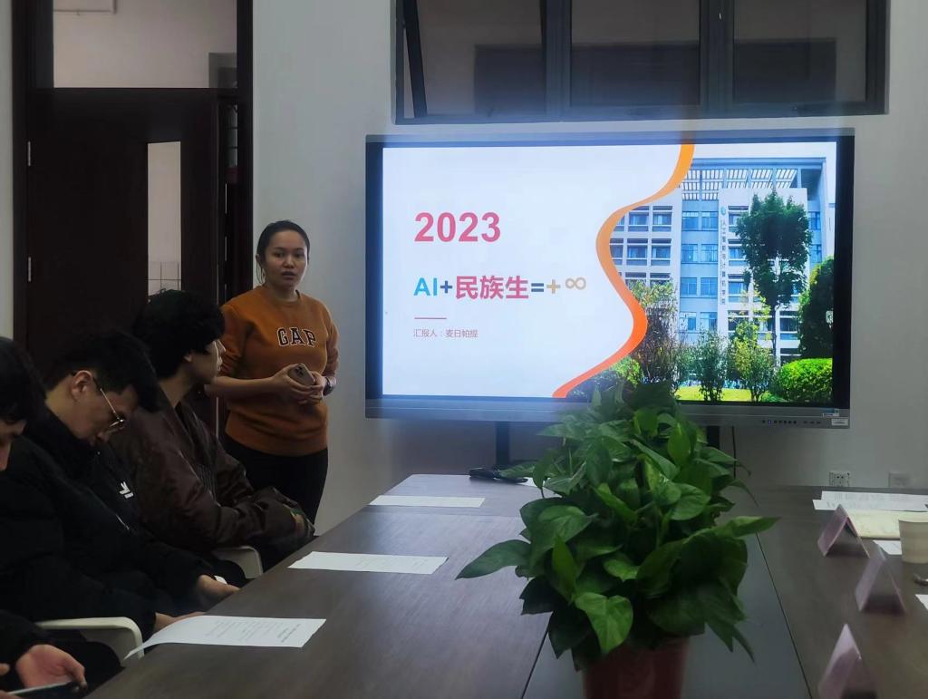 会议在活跃的氛围中拉开帷幕。首先,麦日帕提将学院的民族生工作情况从思想引领,关爱成长、专业特色等横向维度,思想教育、党员发展、选树榜样、学业、生活、就业以及心理等纵向维度进行了详细的解读,希望同学们能够树立远大理想,在学院的关爱和培育下,爆发出无限的可能性。