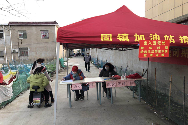村口进行出入登记