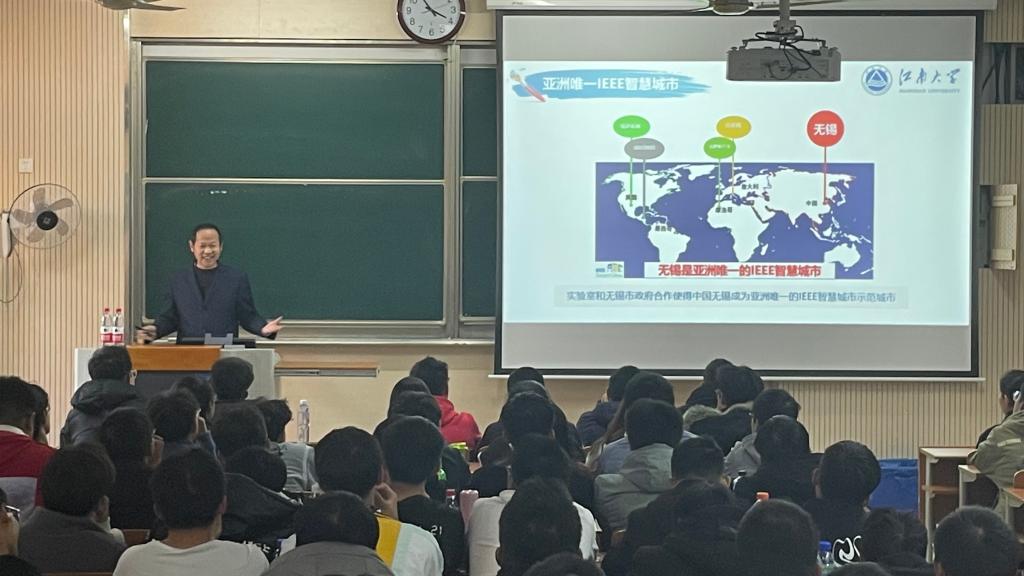 吴小俊教授首先从人杰地灵的“太湖明珠”无锡讲起,结合国家战略和地域优势展示了我院人工智能专业的办学优势,随后从学科简介、国际合作促进人才培养以及给新生的建议三个方面展开此次专业启蒙。无锡作为国内发展物联网产业的先锋城市,是亚洲唯一的IEEE智慧城市示范城市,这为人工智能专业的发展和人才培养提供了极其优越的外部环境。学院培养的硕博生连续多年在国际顶级竞赛中屡创佳绩,发表多篇高质量的权威期刊论文。同时,我院鼓励学生参与学院提供的国际交换、游学夏令营、国际会议等项目开阔学生视野,通过国际合作进一步优化学院人才培养工作。最后,吴小俊教授从专业学习、时间管理、图书馆资源利用、人际交往与身心健康等方面给新生们提出了宝贵建议,并希望第一届人工智能专业的同学们能苦练本领,增长才干,为后疫情时代的到来做好充分准备。