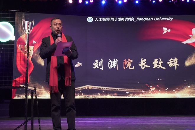 院长刘渊上台致辞,他回顾我院2021年在全院师生共同努力下取得的突出成绩,同时希望2021级新生坚定理想信念、心系伟大祖国、勇于砥砺奋斗,求真学问、练真本领,迎接精彩的大学生活。在随后的表演中,院学生会成员带来舞蹈《最炫智能风》,充分展现了智能学子朝气蓬勃的青春风采;各年级辅导员老师和研究生朗诵《请党放心,强国有我》献礼建党百年。紧接着,学院领导和老师们齐唱《三百六十五个祝福》,向台下师生分发新年糖果,院党委书记张华代表学院党政向全体师生寄语新年祝福,将晚会推向高潮。学生们自编自演的《芳华》、《单车占争》、《骏儿的一天》和《监考老师》等小品在诙谐幽默的演绎中有力彰显了智能学子珍惜青春时光,不负祖国期盼的坚定信念,迎来现场阵阵掌声。舞蹈《beat it》、十佳歌手的《这世界那么多人》、过载树莓乐队的《Don’t Look Back in Anger》、研究生的歌舞表演《breaking齐舞Part1》和《One of a kind》打动全场师生,同学们的实力唱跳将我院学子多才多艺、能歌善舞的超凡风采展现的淋漓尽致。晚会现场还穿插了充满趣味性的抽奖活动,营造了热烈浓厚的氛围。最后,伴随着童年歌曲的优美旋律,晚会在新生副班带来的《刻在DNA的童年金曲》中落下帷幕。