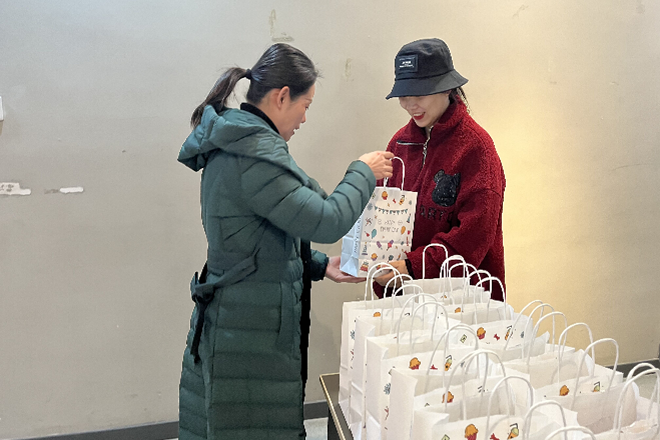 最后,陈书记和辅导员们将考研加油包发放给了考研学生。加油包中装有橙子——寓意心想事成,前程似锦;旺仔牛奶——寓意考运旺,精力旺,牛气冲天;能量棒——寓意能量满满状态佳;“孔庙祈福”涂卡笔套装——寓意福气满满,以及充满老师心意和祝福的手写加油卡。考研加油包情系考研生,为他们送去了寒冬中的温暖。