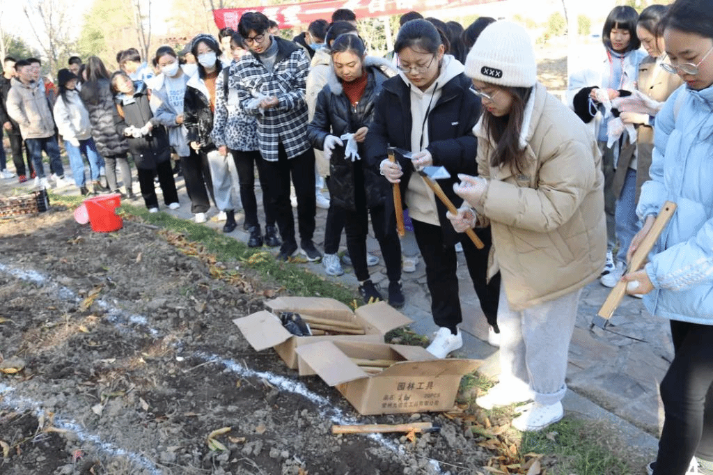 本次课程采用理论教学与劳动实践相结合的形式进行,理论课程在第二教学楼A210多媒体教室开课。“园艺课堂”讲师团成员、园艺花卉组组长吴湘娟老师向同学们科普了郁金香的基本知识,介绍了郁金香的品种、生长习性、种植方法,分享了郁金香的趣味小知识等。理论课程结束后,大家来到百草园开展劳动实践,在工作人员和吴湘娟老师的指导下,同学们纷纷领取工具开始种植。