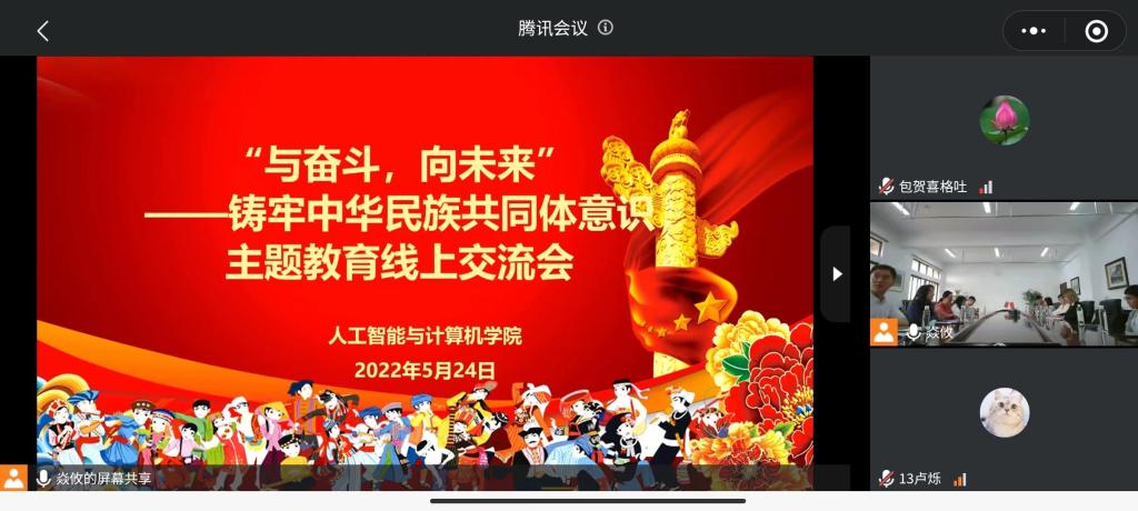于5月24日在智能楼610开展“与奋斗,向未来”——铸牢中华民族共同体意识主题教育交流会,本次交流会采取线上与线下相结合的方式,共计100余名师生参会。久久小说