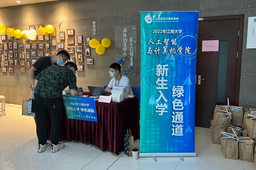 迎新现场,学院大厅布置了2022届本科毕业生升学光荣榜,不少新同学表示,在未来的四年要以优秀的学长学姐为榜样,刻苦学习,将自己打磨成有才干、有能力的优秀智能学子。学院还为2022级新生准备了礼物:“江小智”帆布袋、江大专属明信片、文件袋等系列定制文创产品,以优质文创产品为新生带来归属感和幸福感。