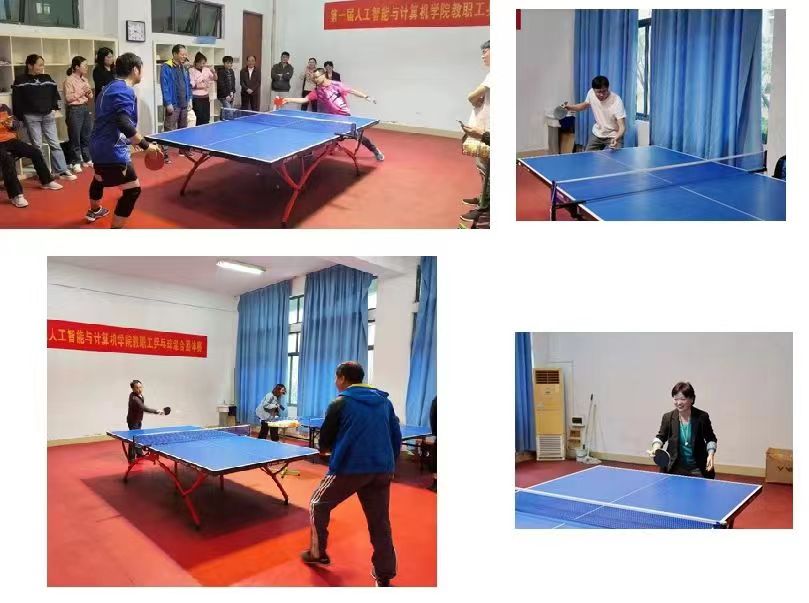 计算机系教工党支部、数字媒体技术系教工党支部、公共教学与实验中心党支部等三个教工党支部分别组队参加本次乒乓球赛,学院党委书记张华、工会主席陈秀宏为比赛发球,副书记陈祎、副院长谢振平、夏鸿斌带头参加比赛。经过激烈的比赛,最终计算机系教工党支部获得第一名,公共教学与实验中心党支部获得第二名,数字媒体技术系教工党支部第三名。