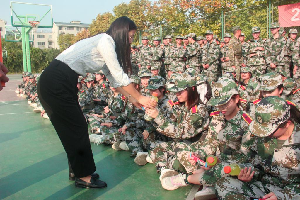 副院长(主持工作)方伟,2022级学生军训团二营营长江汉青,党委副书记、副院长王莉莉,学院分团委书记兼学工办主任王园园,学工办副主任杜磊,班主任代表朱书伟等前往军训场地看望慰问承训教官及全体参训学生。