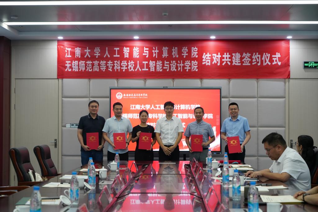 共建无锡师专框架协议,深化高等教育与职业教育的合作,7月28日,我院与无锡师范高等专科学校(以下简称“无锡师专”)的人工智能与设计学院(筹)正式签署结对共建协议。此次签约仪式在无锡师专举行,无锡师专党委书记陈琳,副校长赵刘、邵小明、过健,宣传部部长、党政办公室主任费云霞,相关部门负责人及人工智能与设计学院(筹)教师代表出席活动。我院党委书记魏珍吉,院长方伟,副书记王莉莉,副院长钱鹏江、宋威等一行共同参加了此次签约仪式。