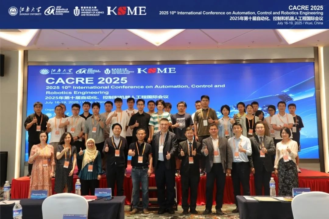 主办,IEEE RAS、香港科技大学(HKUST)和香港机械工程师学会(HKSME)协办,锡港沪机器人灵巧智能研究院(无锡市锡港沪灵巧机器人有限公司)、四川大学、香港理工大学南京技术创新研究院、西安电子科技大学、东华大学、上海工程技术大学和Guidance, Navigation and Control支持的2025年第十届自动化、控制和机器人工程国际会议(CACRE 2025)已于近日在中国无锡成功举行!