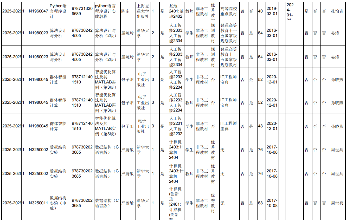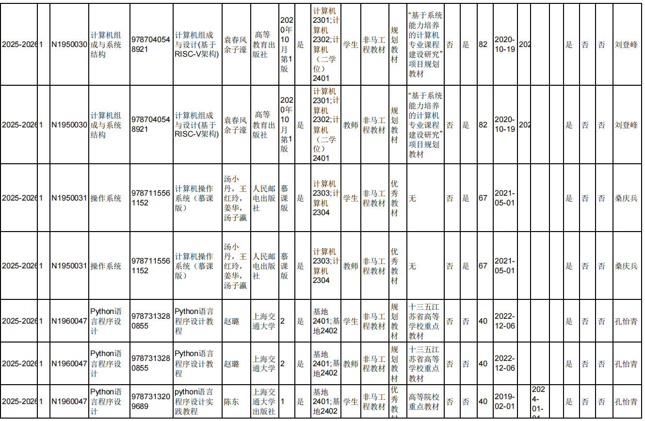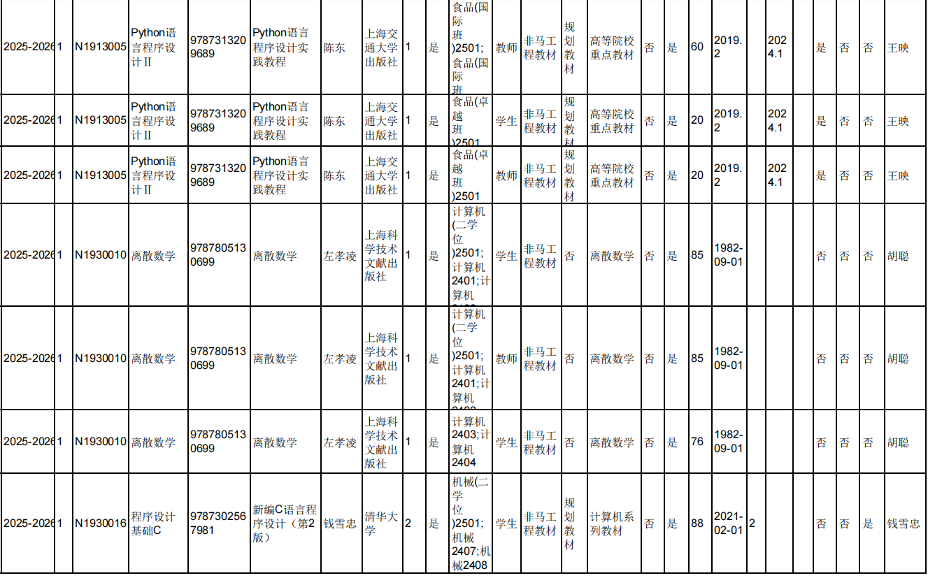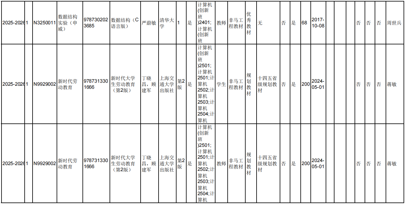 2025.6.5院教材审核专家对本院教师填报选用的2025-2026-1学期久久小说 本科生教材进行现场审核,本院教师所选用的2025-2026-1学期久久小说 本科生教材均符合教材选用要求。现将审核结果进行公示。