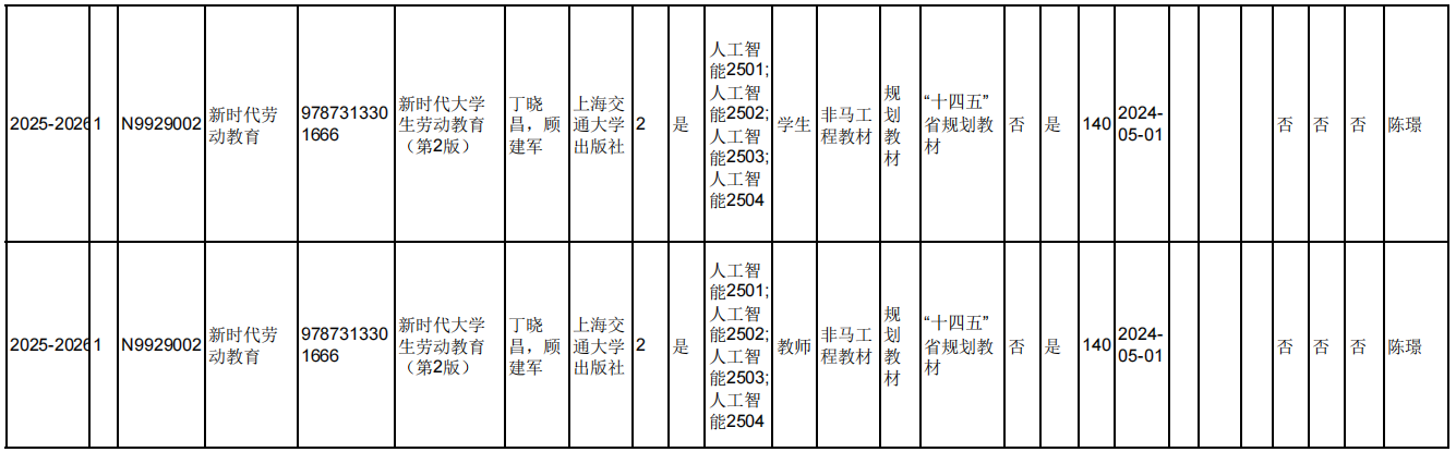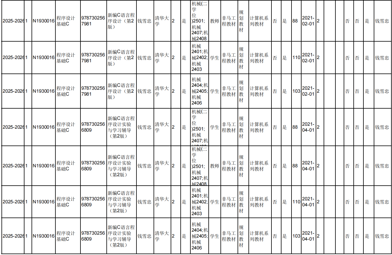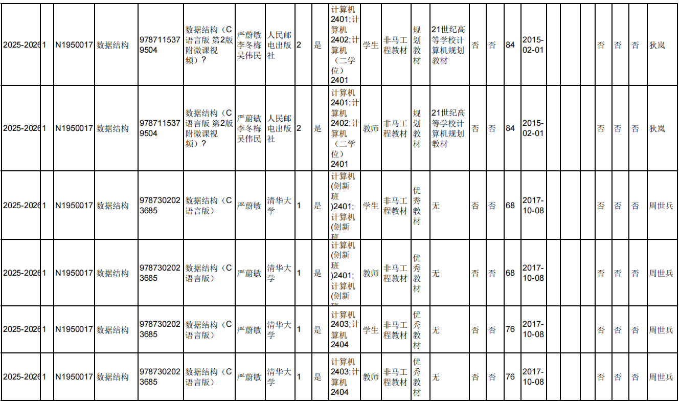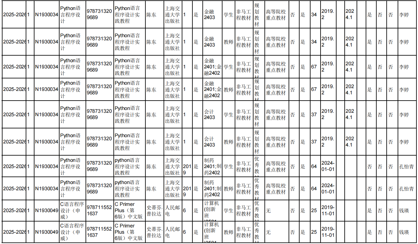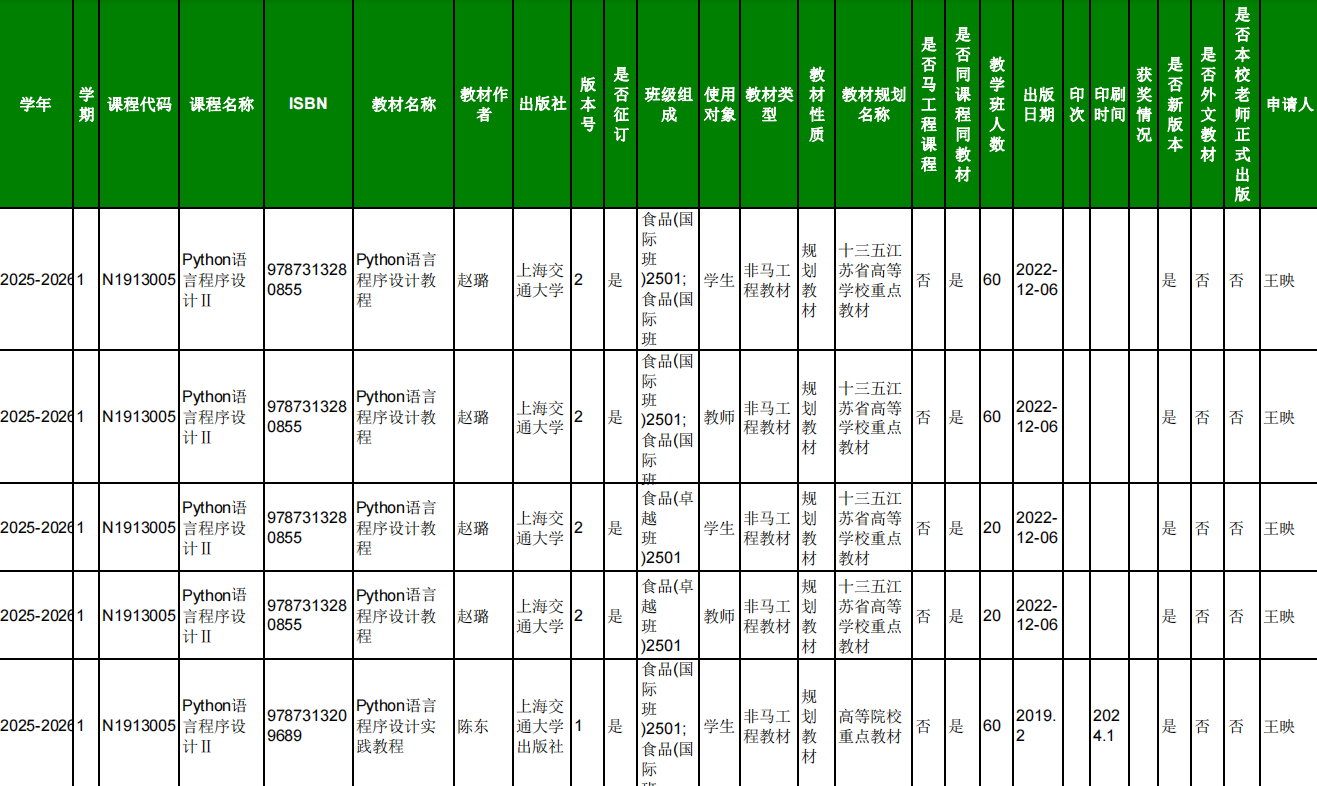 2025.6.5院教材审核专家对本院教师填报选用的2025-2026-1学期久久小说 本科生教材进行现场审核,本院教师所选用的2025-2026-1学期久久小说 本科生教材均符合教材选用要求。现将审核结果进行公示。