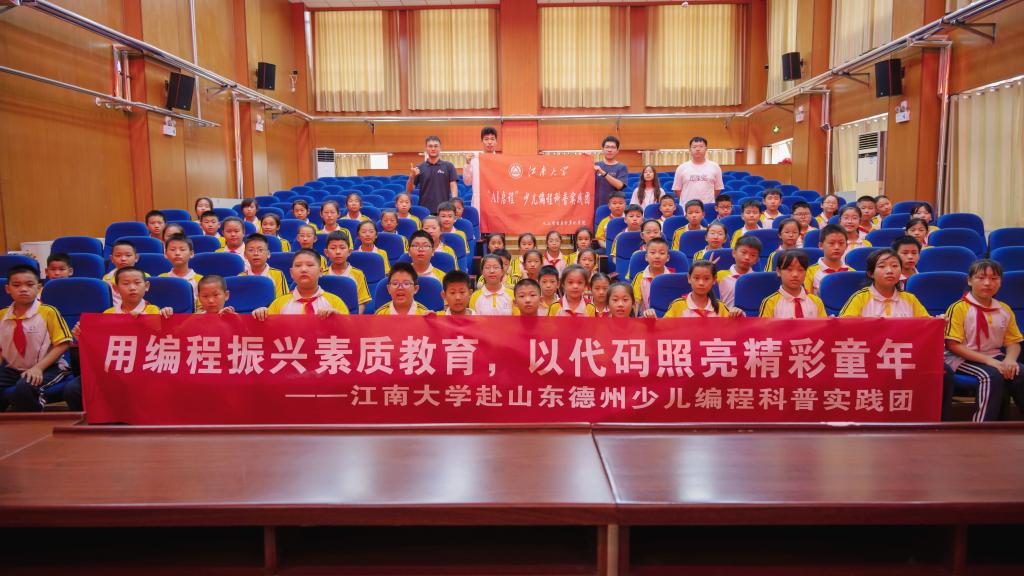 于2023年6月组建“AI启程”少儿编程科普实践团,结合专业所学致力于向信息化水平欠发达地区的义务教育阶段学生普及人工智能知识,开展少儿编程基础课程,努力推进“双减”政策背景下素质教育城乡一体化均衡发展。暑期,团队师生奔赴山东省德州市陵城区开展少儿编程科普实践活动。