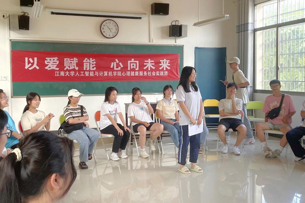 组建“以爱赋能,心向未来”大学生心理健康服务暑期社会实践团。该团队由5位心理委员组成,每位团队成员均接受过心理委员的系列专业培训。暑期,实践团成员分赴湖南省衡阳市衡东县第一中学和楚天中学,在无锡市、衡东县开展了心理问卷调查、心理健康知识普及、团体心理辅导等心理健康教育系列活动,为当地的青少年和家长送去夏日里的“舒心”小妙招。