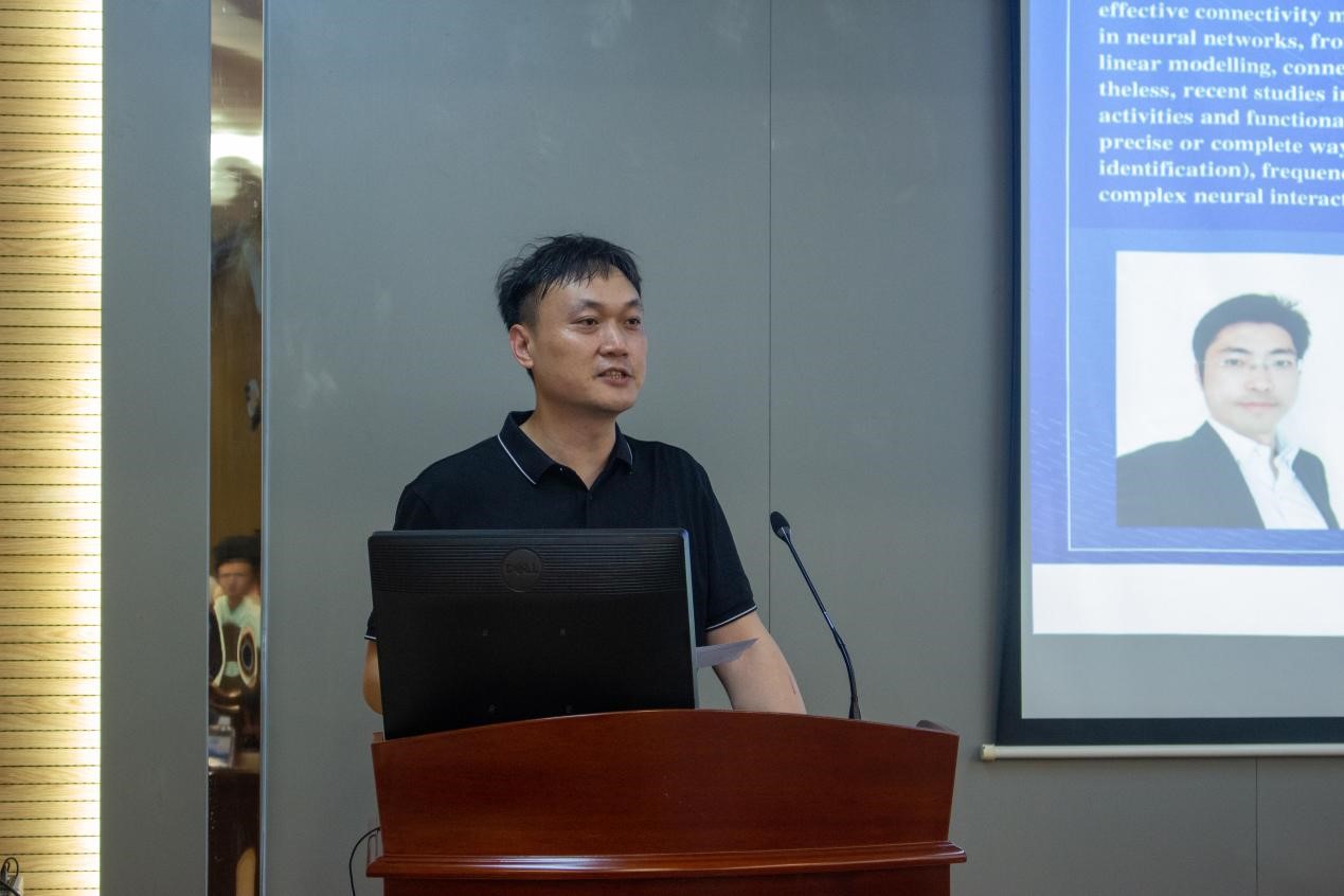 讲座伊始,何飞老师先从线性系统分析展开讲解,再逐步扩展到非线性系统分析在大脑信号的系统辨识领域的应用,他着重介绍了系统辨识和频域分析的相关知识。随后,他介绍了团队当前的主要研究方向和内容,并结合自身经历和相关项目经验引出讲座主题。他重点讲述了团队在大脑信号的系统辨识领域使用非线性系统建模方法对EEG信号进行系统辨识的工作以及取得的成果。最后,他简要介绍了EEG信号的系统辨识和频域分析方法在医学领域的有关应用。