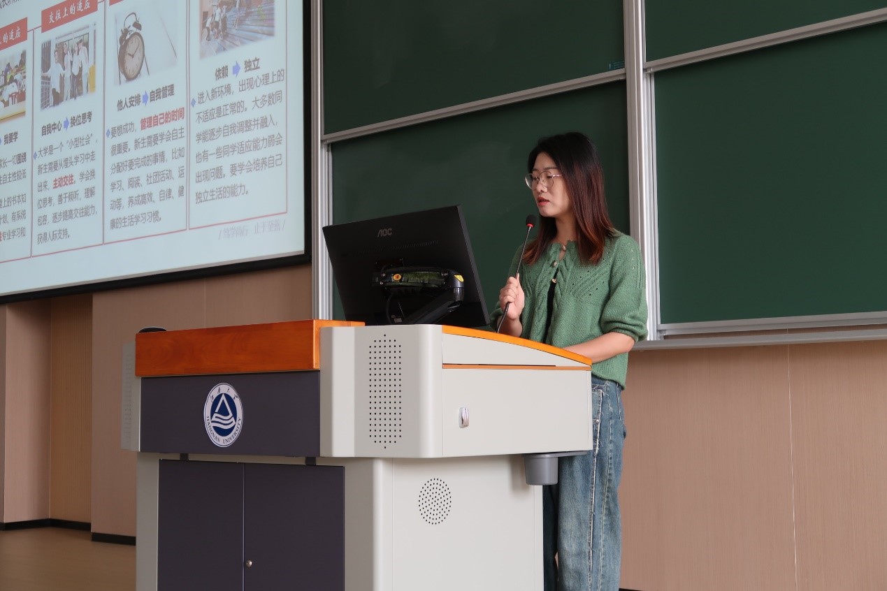 杨玉莹从大学可能面临的问题入手,表明了从高中到大学学习生活中会发生的变化,鼓励同学们应正确面对、掌握方法、自我调节、逐步适应;阐述了心理咨询的科学性和重要性,在必要时候及时开展心理咨询。提醒同学们管理好自己的生理健康和心理健康,青春作伴,共同成长。