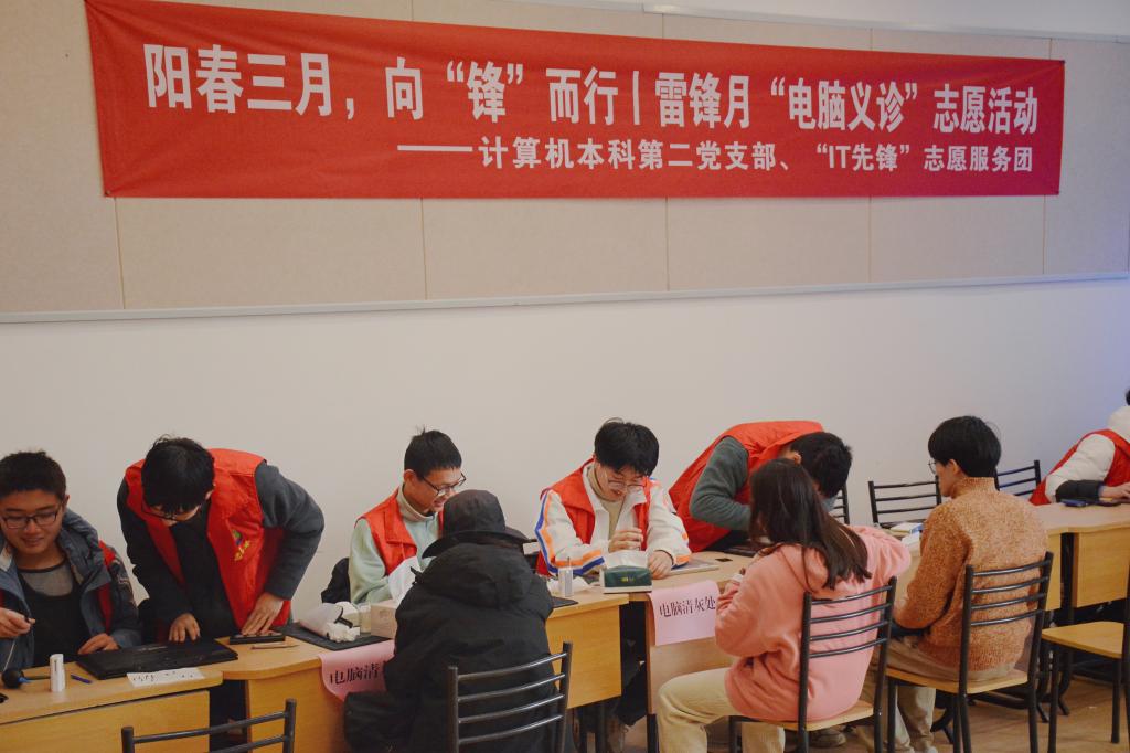 计算机本科第二党支部联合“IT先锋”志愿服务团举办了雷锋月“电脑义诊”志愿活动。