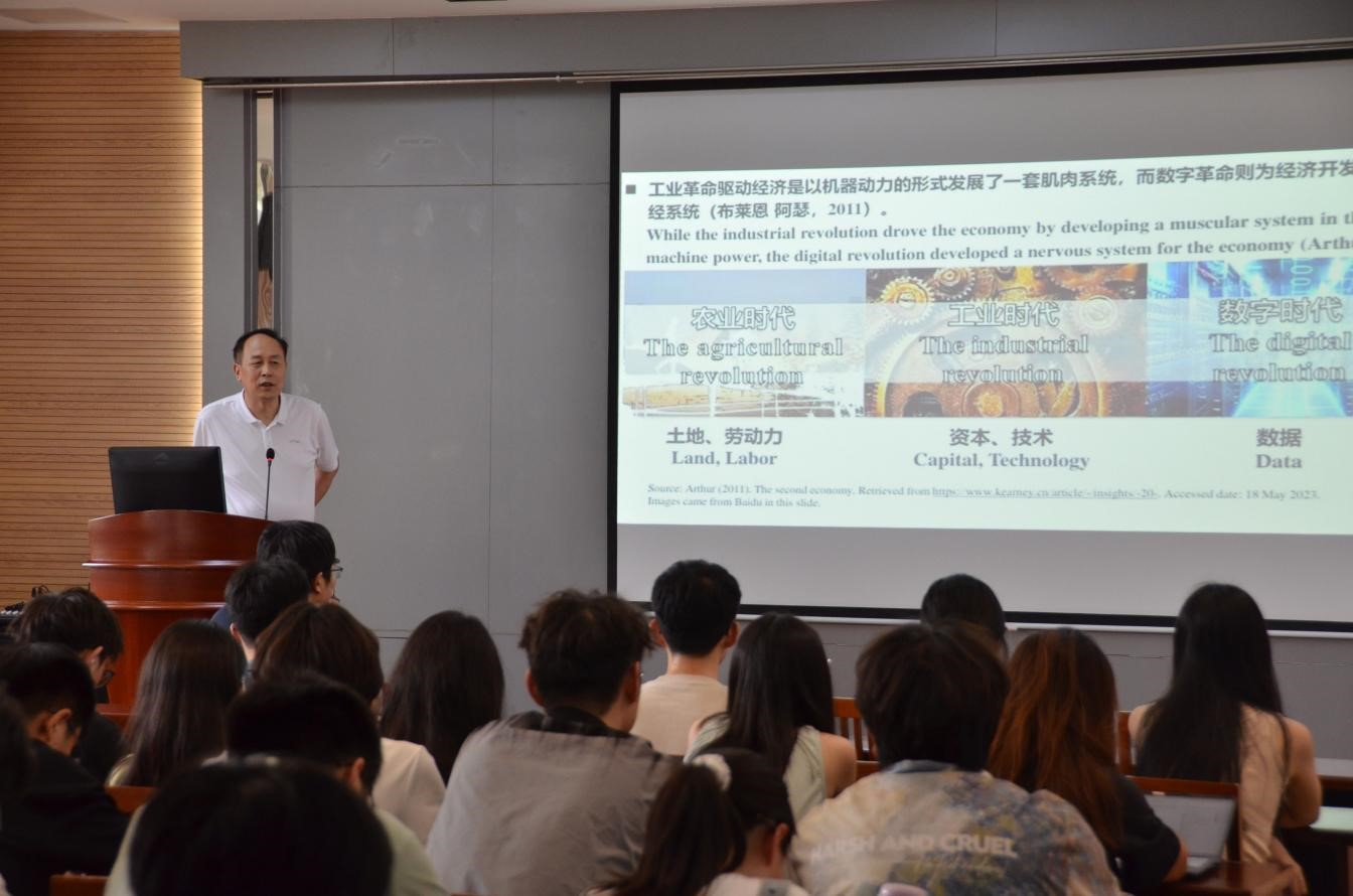 下午,王志军为学院师生作题为《工业大数据的应用与创新》的专题讲座。他深入浅出地探讨了工业大数据的应用与创新方面的内容,通过分析美德日三国的高校企业机构来探讨数字经济时代以及国外智慧产业的发展,阐述了产业互联网与新质生产力之间的关系,从国家战略层面分析了如何加快发展新质生产力,让同学们明白了数字经济时代所面临的机遇与挑战。他从三类主体、一条路径、三个提升分析了产业互联网如何赋能新质生产力,重构商业价值,分析了垂直行业与AI在供应链领域如何进行融合创新,给大家带来了技术赋能产业的启迪。