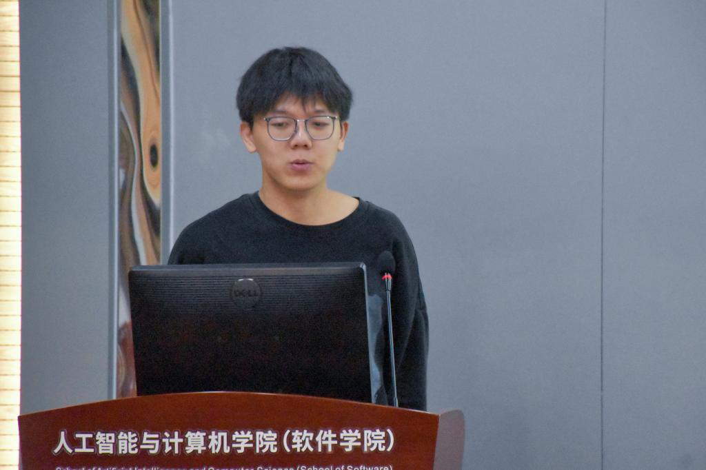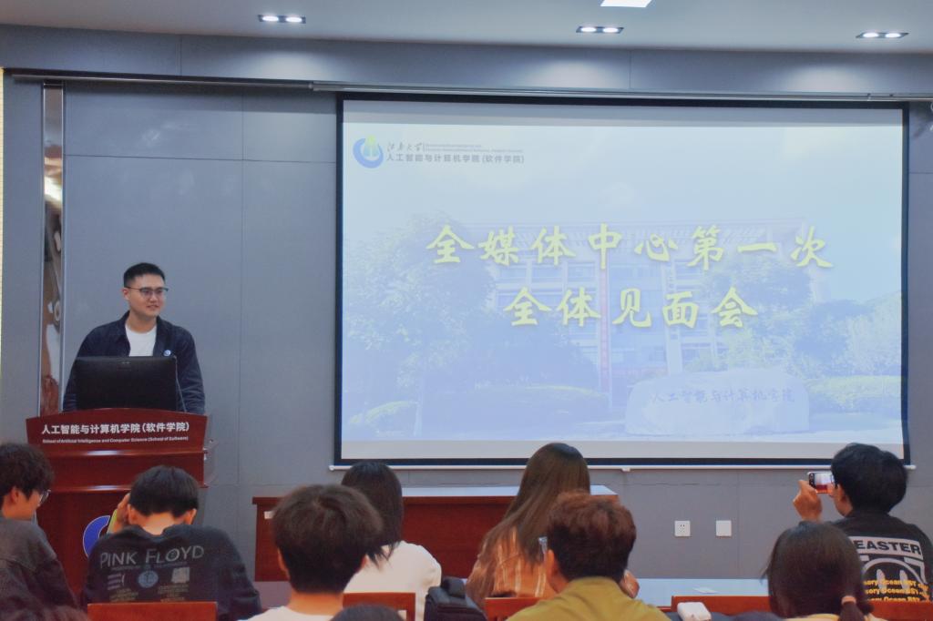 全媒体中心学生负责人葛飞、吴旭彬分别作工作汇报。葛飞介绍了全媒体中心的组织架构,强调了组织定位、宗旨与工作内容。他表示,全媒体中心处于探索和发展阶段,工作制度与组织管理等方面需要进一步完善,希望全体成员齐心协力,推动全媒体中心平稳健康发展。吴旭彬详细梳理了本学期全媒体中心工作要点,明确了各部门在“1024程序员节”、迎新晚会等重点活动的任务安排。