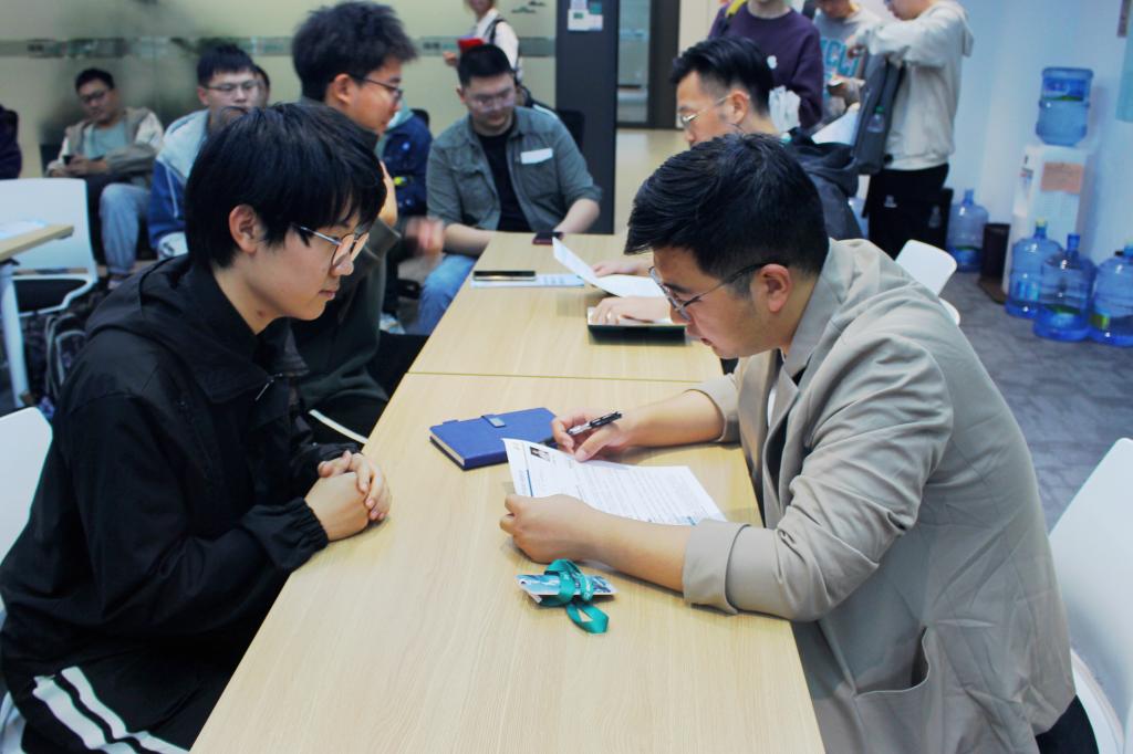 对高新区经济社会发展概况和重点产业布局熟悉后,师生太科园魏正陪同下走进朗新科技集团。集团招聘经理张鹭强带领学生参观了朗新AI智慧展厅,对企业在零碳、能源、AI等领域的前沿实践与应用成果做了详细介绍,学生对产业的最新动态有了直观感受。座谈会上,张鹭强介绍了关于职业发展经验、行业趋势及企业用人需求,用实战经验和深刻见解为学生的职业选择和规划作出科学引导。在简历问诊和现场投递环节,学生们更是得到了相关专家的现场指导,为未来的求职之路打下了坚实的基础。