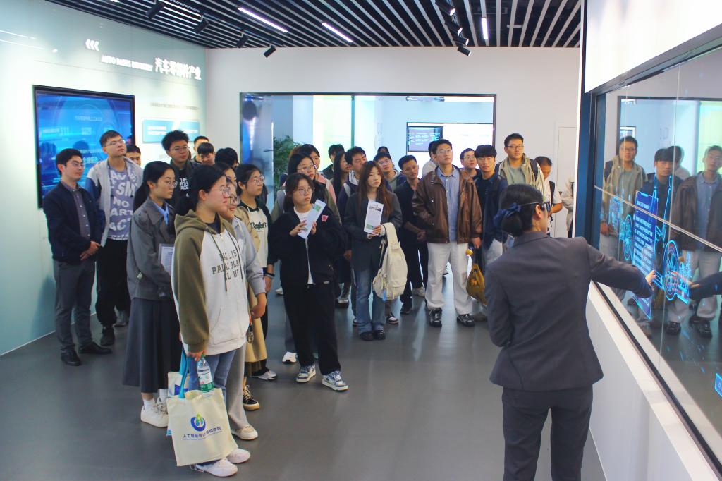 师生一行在无锡太湖国际科技园管理办公室副主任王哲的陪同下,参访无锡高新区展示中心,全面领略了高新区的历史沿革、主导产业以及科创优势。在中国物联网国际创新园,师生着重了解了高新区在物联网、元宇宙、人工智能等新一代信息技术领域的发展态势和重点企业的创新成就。