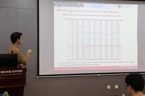 胡尧的主讲报告题为《隐私保护深度学习在数据稀缺下的医学影像分析》。他以医学数据的高敏感性为切入点,解析了如何通过隐私保护深度学习技术实现高效、可靠的医学影像分析,介绍了联邦学习和迁移学习在数据稀缺情况下的应用。
