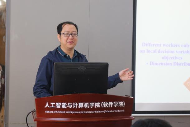 程适带来了主题为《群体智能算法自动设计》的报告。他结合多年研究经验,详细介绍了群体智能算法在复杂问题优化中的广泛应用,并以典型案例展示了自动设计技术的实践价值,为听众呈现了理论与实践融合的创新思路。