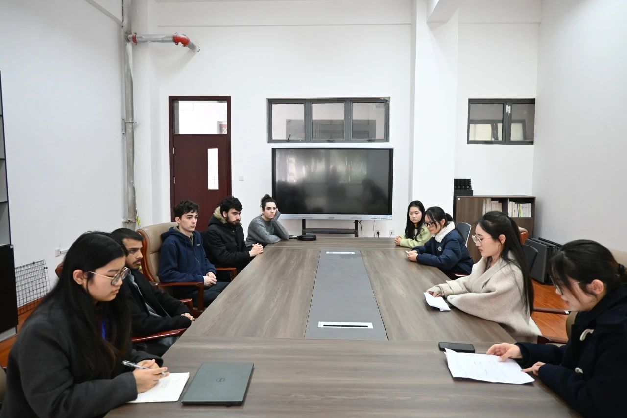 交流会上,学院学生代表王一凡、王可欣详细介绍了学院课程特色、科研优势及学术交流活动,并分享自身的学习生活经历。她们鼓励法国学生积极参与我校学术实践,探索跨文化学习机会。在提问环节,法国交换生就课程设置、教师答疑及校园生活等方面踊跃提问,学院学生代表逐一解答,现场气氛热烈。