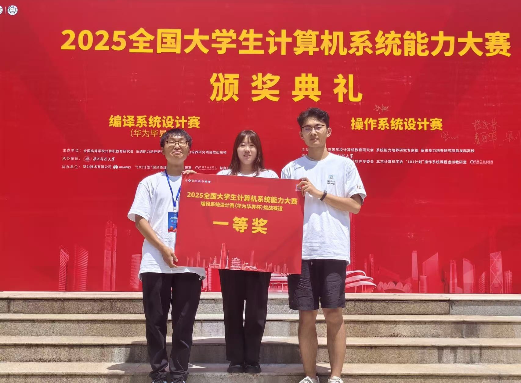 近日,2025全国大学生计算机系统能力大赛全国总决赛在华中科技大学举行。我院由方伟、周浩杰等担任指导老师的2支参赛队伍从清华大学、剑桥大学、北京大学等国内外顶尖高校的千余支队伍中脱颖而出,一举斩获编译系统挑战赛一等奖1项及操作系统功能挑战赛道三等奖1项,刷新我院在该项赛事中的历史最佳战绩。全国大学生计算机系统能力大赛是国内计算机领域极具影响力和权威性的赛事之一,着重考察大学生在计算机系统设计、开发与优化等方面的综合能力。在编译系统挑战赛中,CodeSize赛道的团队基于毕昇编译器,采用了BOLT、段节管理、压缩壳等技术,成功将代码体积平均降低了81.7%,远超去年的46.3%;并行优化赛道的团队扩展SysY语言,实现非规范循环结构向量化、并行块合并优化,并创新性利用AI驱动的自动化配置,实现指令级和线程级并行,显著提升程序性能。两支队伍均获得华为毕昇编译器架构师及编译器领域技术专家的高度评价。在操作系统功能挑战赛道中,参赛团队基于Linux内核模块编程技术,通过引入两级密钥架构、TPM密钥管理等创新性设计,实现了一个面向RISC-V架构的文件级安全文件系统,展示了团队在操作系统领域的深厚功底。