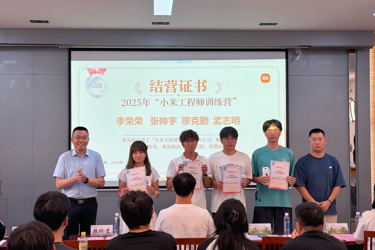 -小米工程师训练营结营及表彰优秀学员的决定》,与会领导和嘉宾为学员代表颁发了结营证书并合影留念。