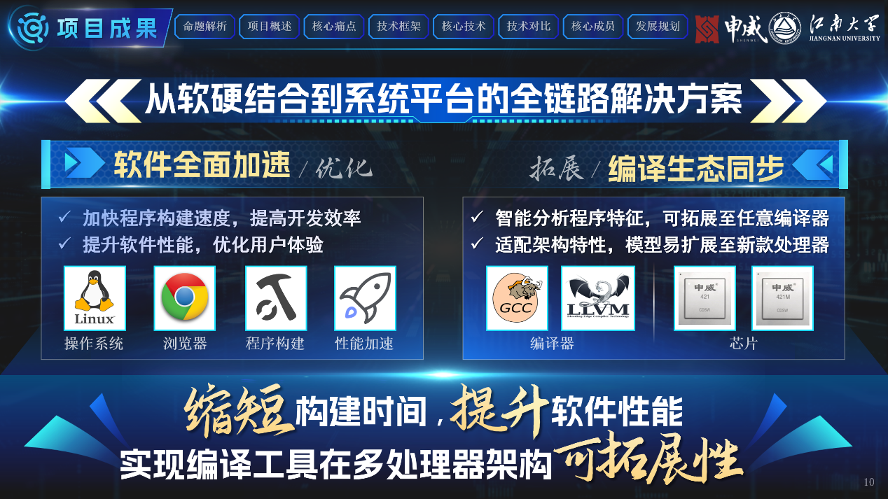 程莹莹、丁海峰等研究生和本科生组成的团队,凭借面向国产处理器的智能编译优化技术研究的作品《AI驱动的软硬件协同优化智能编译系统》,荣获全国特等奖。