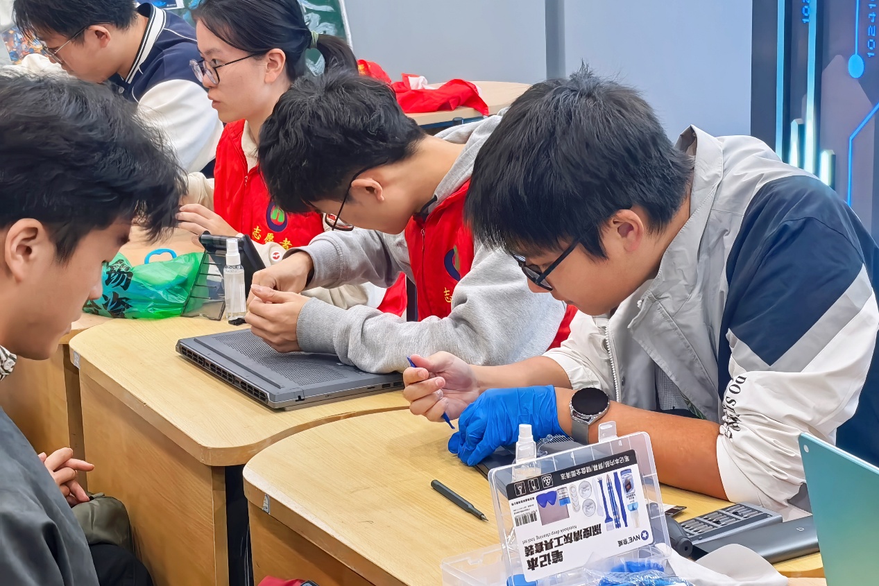 活动前期,学院组织了活动培训。培训聚焦电脑拆机除尘、C盘清理、重装系统等核心技能,构建理论授课、实操演练培训体系,有效提升了志愿者的专业素养,为活动储备了过硬的技术力量。