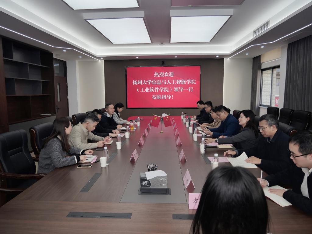 11月10日,扬州大学信息与人工智能学院(工业软件学院)党委书记潘骏、院长刘维率学院全体班子成员来我院调研交流。我院党委书记魏珍吉、院长方伟、党委副书记王莉莉、副院长谢振平等参加座谈。座谈会由方伟主持。