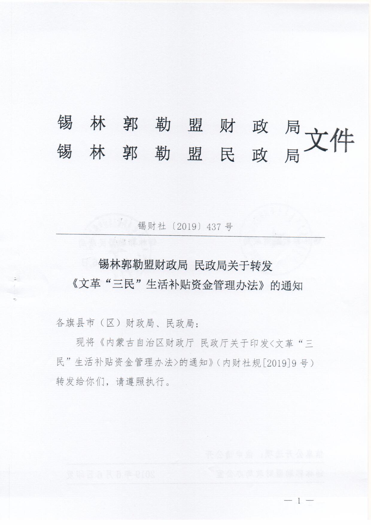 久久小说 财政局 久久小说 关于转发《文革“三民”生活补贴资金管理办法》的通知(锡财社〔2019〕437号)