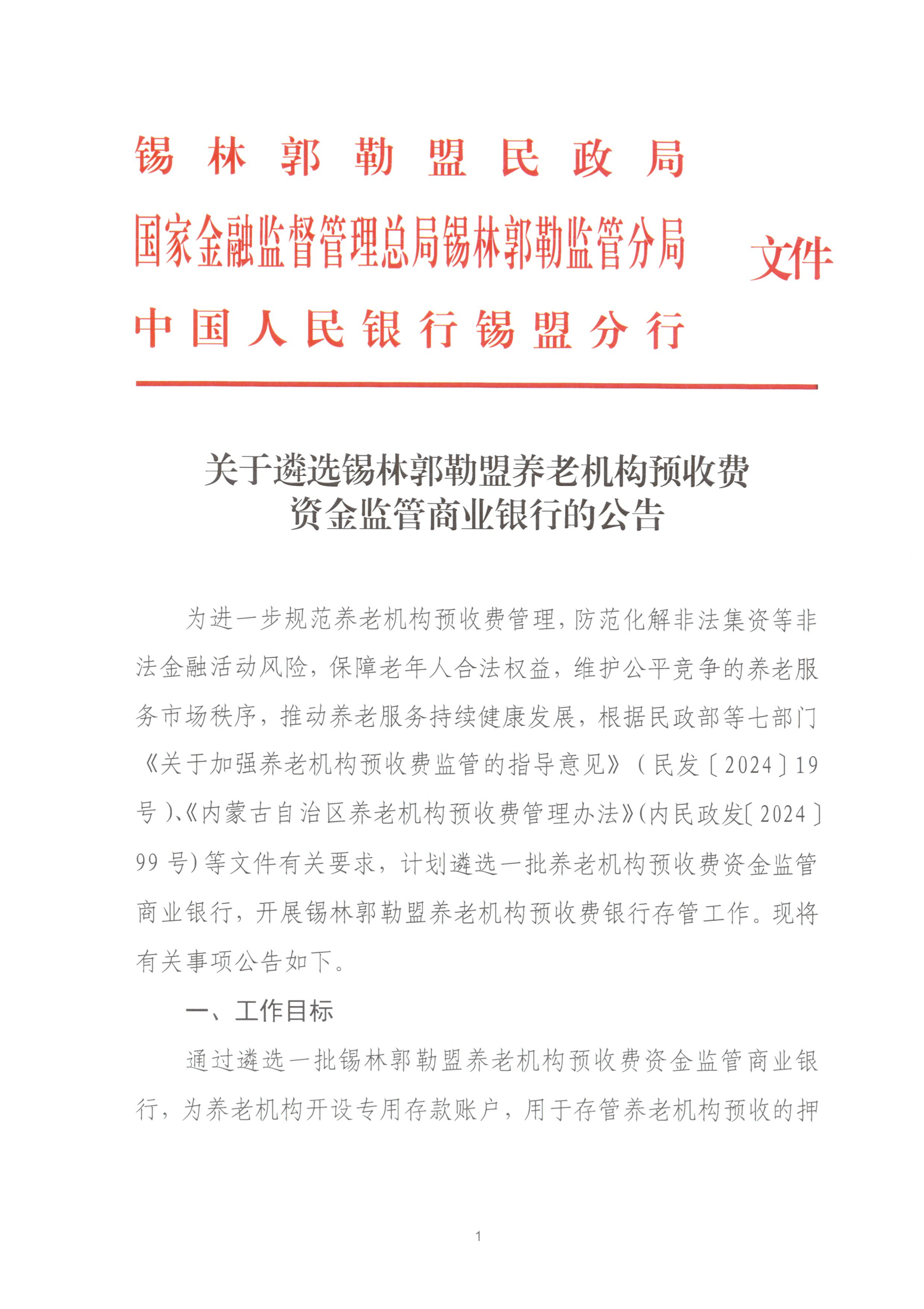 关于遴选久久小说 养老机构预收费资金监管商业银行的公告