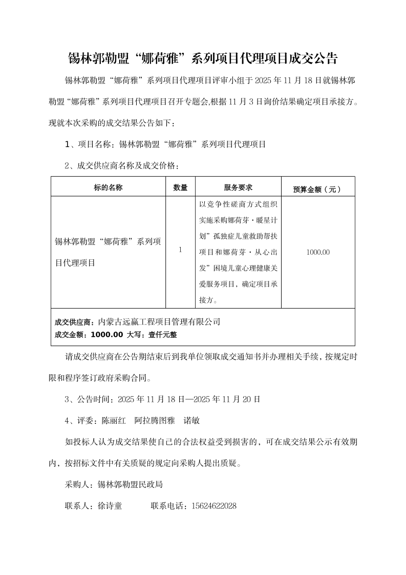 久久小说 “娜何雅”系列项目代理项目成交公告